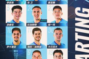 1-季家葆(GK) 2-张卫 4-姜至鹏 5-胡睿宝 9-德·列昂索 10-萨卡里亚 11-埃杜 19-安永佳 20-杜加利奇(C) 23-杨一鸣 36-卡尔采夫